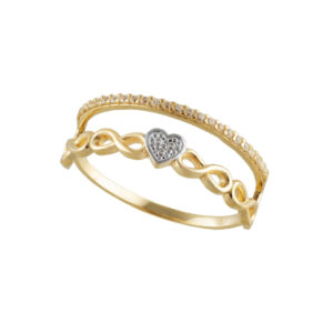 18K gold ring featuring a refined double-band design adorned with sparkling pavé diamond accents, a polished heart centerpiece, and an infinity-inspired detail. This romantic and symbolic piece represents eternal love and connection, blending softness and brilliance in a sophisticated everyday classic 💛💎