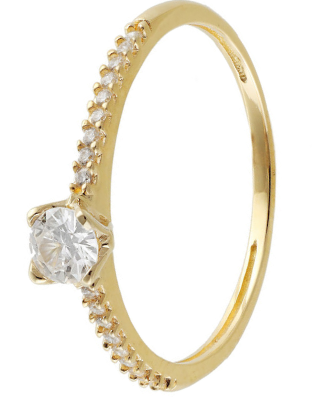 Um anel atemporal e elegante em ouro amarelo, com uma brilhante pedra central redonda rodeada por uma delicada faixa cravejada de pavé. Seu design minimalista realça um brilho sutil, tornando-o perfeito para o dia a dia ou para momentos especiais. Um belo símbolo de amor, compromisso e estilo refinado — ideal como anel de noivado, anel de compromisso ou um presente significativo.
